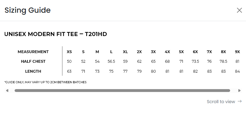 To view size guide click here